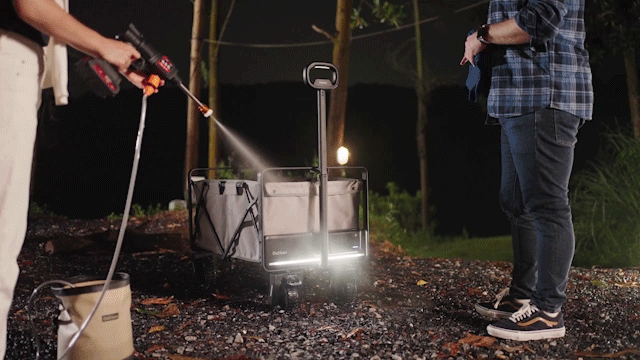 「Outisan e-Wagon Air」は、わずか18kgの軽量ボディでありながら、最大150kgの荷物をスムーズに運べるパワフルさを誇ります。3秒で折りたたむことができ、家族全員の荷物を乗せてアウトドアに出かけるのにも便利です。