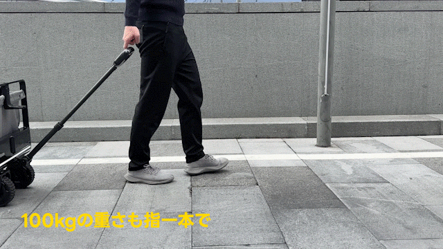 100kgの重さを指1本で軽々引っ張ることができる高トルクモーターを搭載し、砂利道や草地などの悪路でも安定した走行ができ、重い荷物を運搬する際もスムーズな走行と快適な移動を実現します。