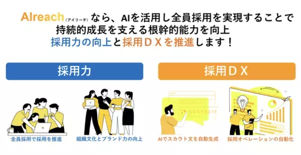 AIreachの革新性:採用力向上と採用DXの両立 AIreachは、「採用力向上」と「採用DX」の2つの側面から企業の採用課題を解決します。