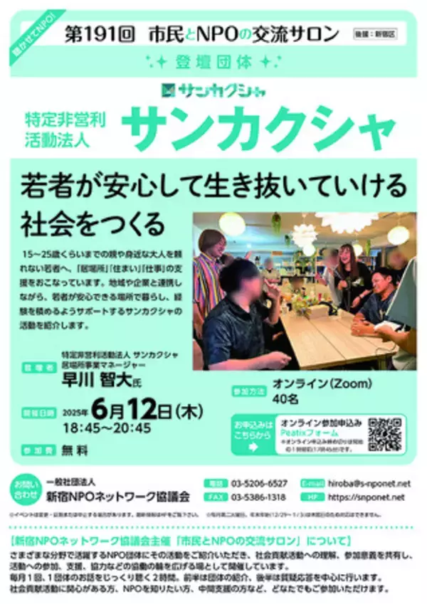 【第191回 市民とNPOの交流サロン(登壇団体:特定非営利活動法人 サンカクシャ)】