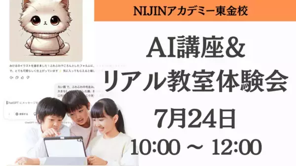 株式会社NIJIN(本社:東京都江東区、代表取締役:星野達郎)が運営する不登校オルタナティブスクール「NIJINアカデミー東金校」(所在地:千葉県東金市)ではこの度、不登校の子供達に生成AIを通して学びの楽しさを味わうとともに、新しい学びの形を広める取り組みとして、AI講座とリアル体験会を実施することをお知らせいたします。