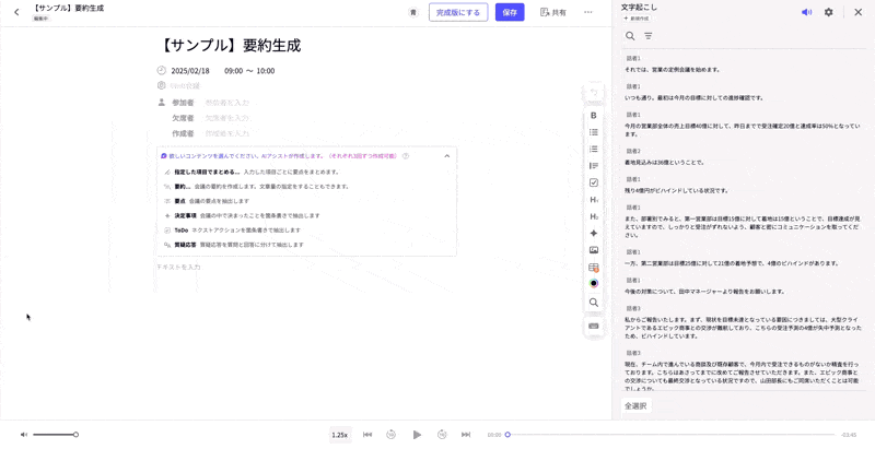 - 自動要約機能により、議事の要点を迅速に把握