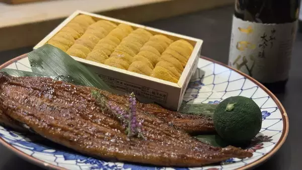 香ばしく焼き上げた国産鰻に、濃厚な生雲丹を贅沢にあしらい、