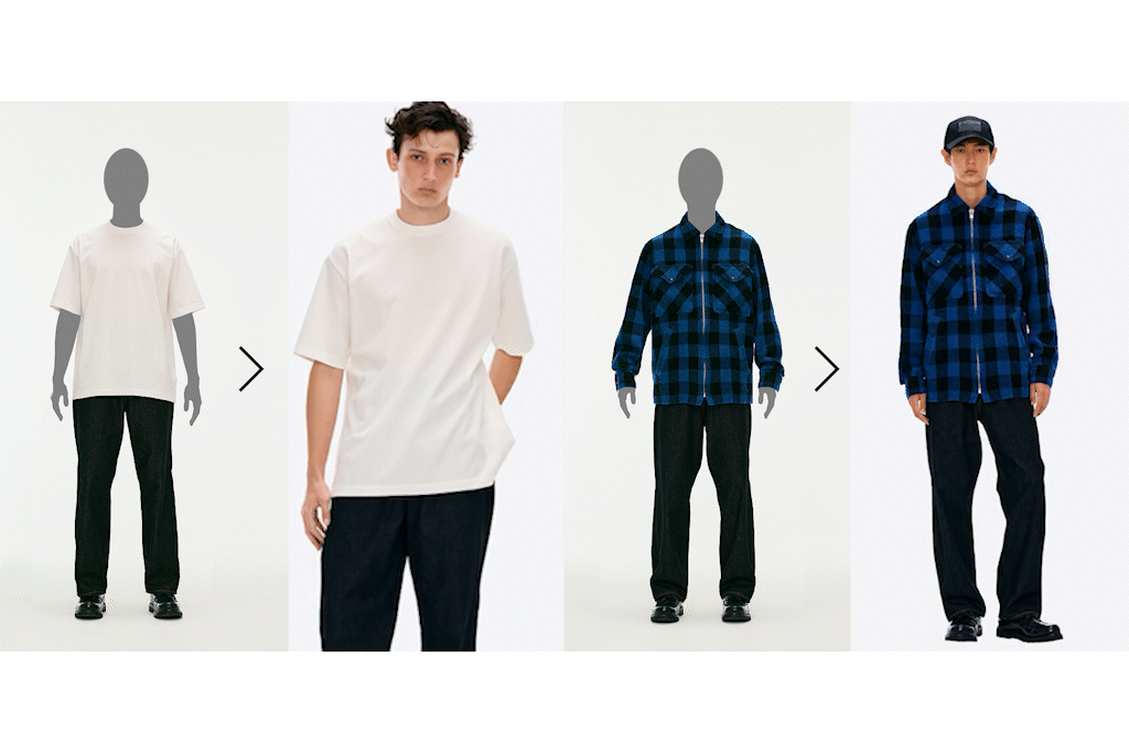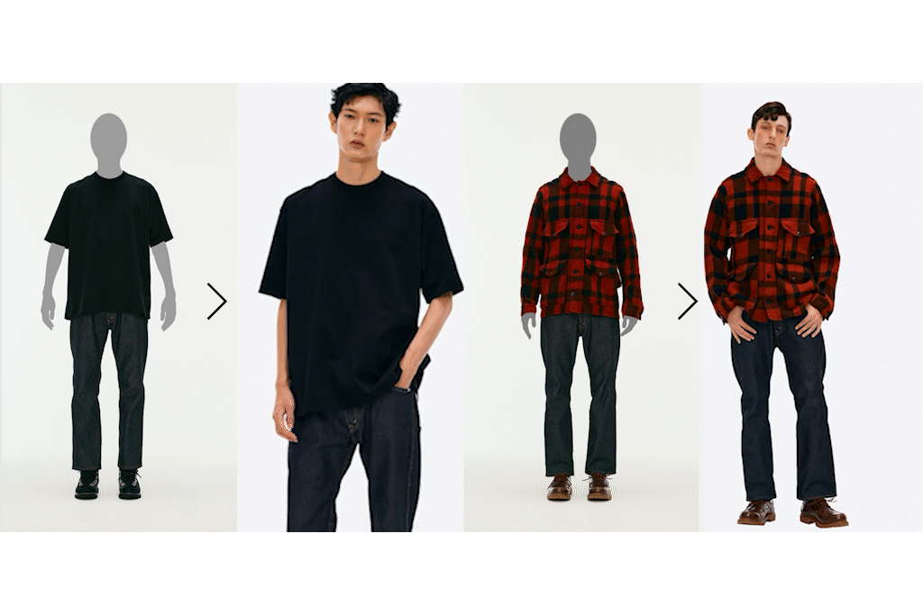 第一弾として、三越伊勢丹ECサイト「三越伊勢丹オンラインストア」で社内外への撮影サービスを運営するイセタンスタジオと連携し「JUNYA WATANABE MAN」のEC販売でAIモデルとAIささげ動画生成サービスの提供を開始します。