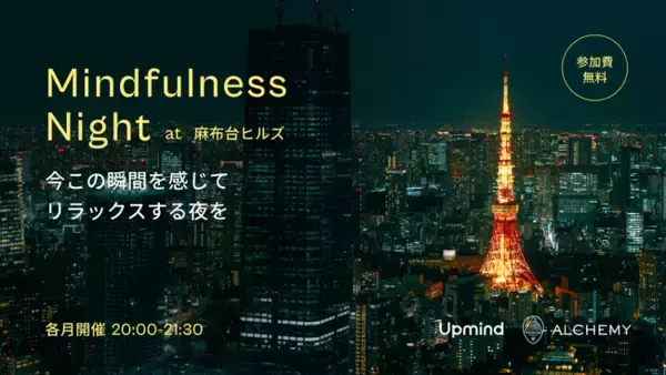 Upmind株式会社(所在地:東京都文京区、代表取締役社長 箕浦 慶、以下「Upmind(アップマインド)」)と、麻布台ヒルズのプラントベースレストラン「Alchemy(アルケミー)」は、夜の時間帯に心身をととのえる無料イベント「Mindfulness Night at 麻布台ヒルズ」を2025年9月~2026年1月の期間、毎月1回・全5回で共同開催します。
