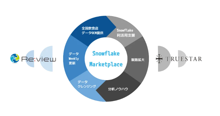 全国の飲食店を網羅したmacciデータベースを株式会社truestarと協働し「Snowflake Marketplace」にて販売を開始しました。Reviewとtruestarでは毎週自動でのデータベース連携を行い、Snowflake Marketplace経由で購入されたお客様に対して、毎週木曜日に更新される最新のデータベースが常時共有されます。