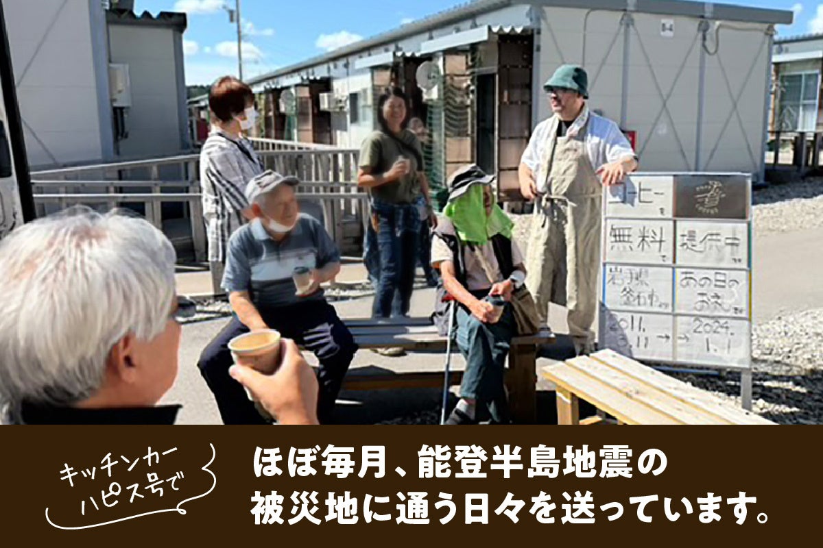 東日本大震災以降、釜石を拠点に被災地でコーヒー提供による交流を継続し、2024年の能登半島地震以降は、毎月のように往訪し避難所や仮設住宅の方々に無償で提供してきました。