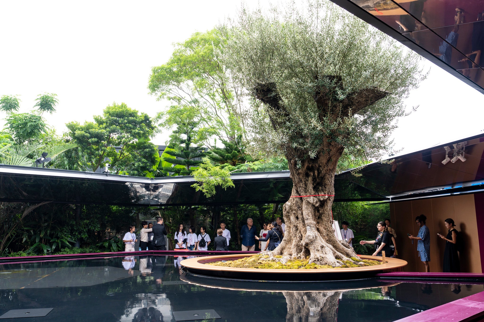 日本の100歳を超える長寿層に共通する「強いマイクロバイオームと腸の健康」に着想を得て、南フランスの千寿オリーブの中に生息する“スーパー・マイクロバイオーム”を発見しました。この驚くべき発見が、万博フランス館の中心展示であるミラクルガーデンの核となりました。