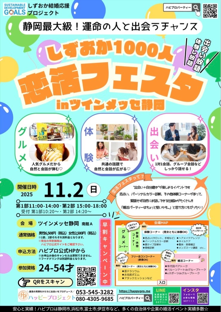 静岡県内で延べ15,000回以上の婚活パーティー、多数の行政・企業委託による婚活イベントを手がけてきた株式会社ハッピープロジェクト(本社:静岡県浜松市)は、
