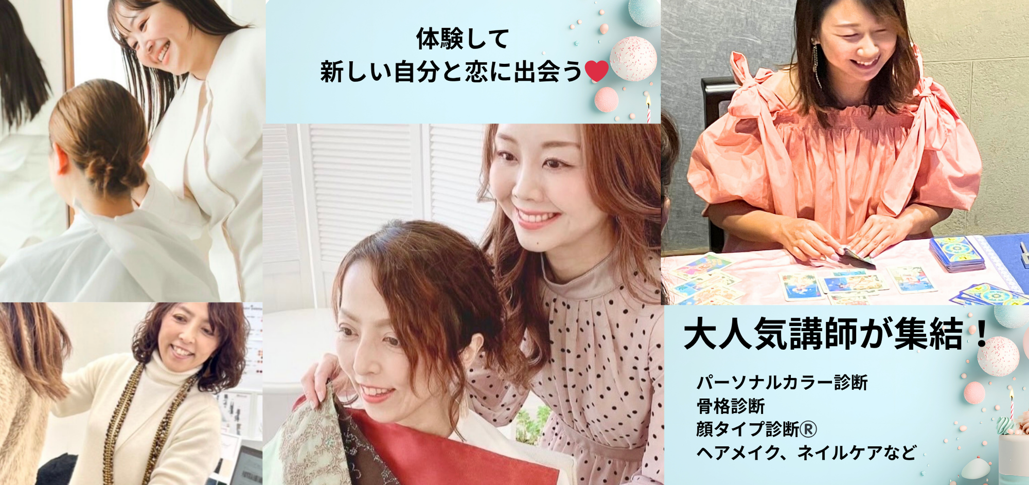 ・自分磨きマルシェ(顔タイプ診断、カラー診断、恋占い等の印象アップ体験)や飲食