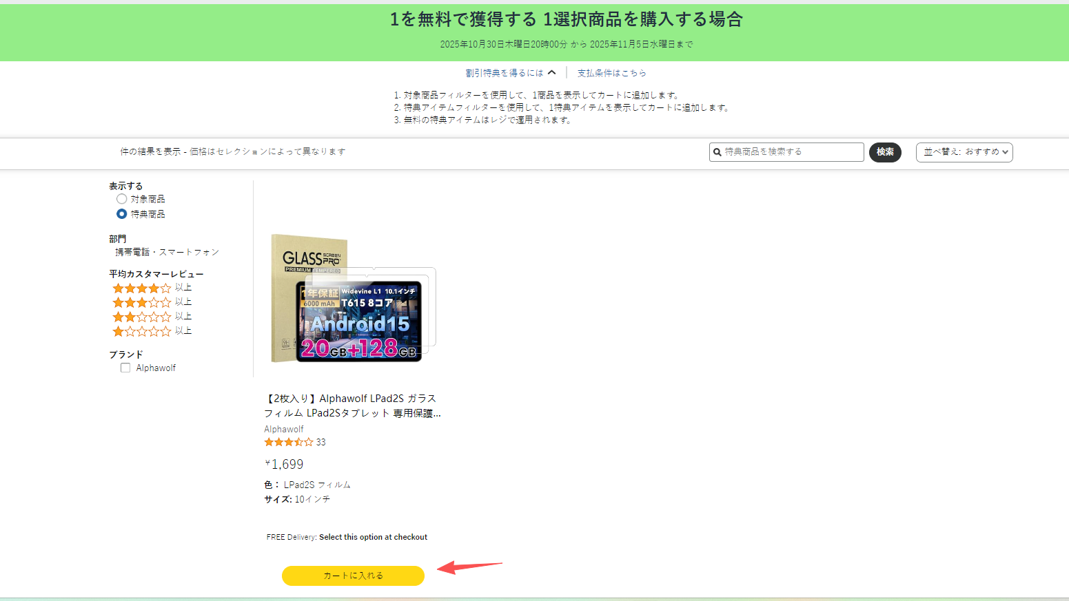 期間限定特典:1699円のガラスフィルムを無料で獲得する