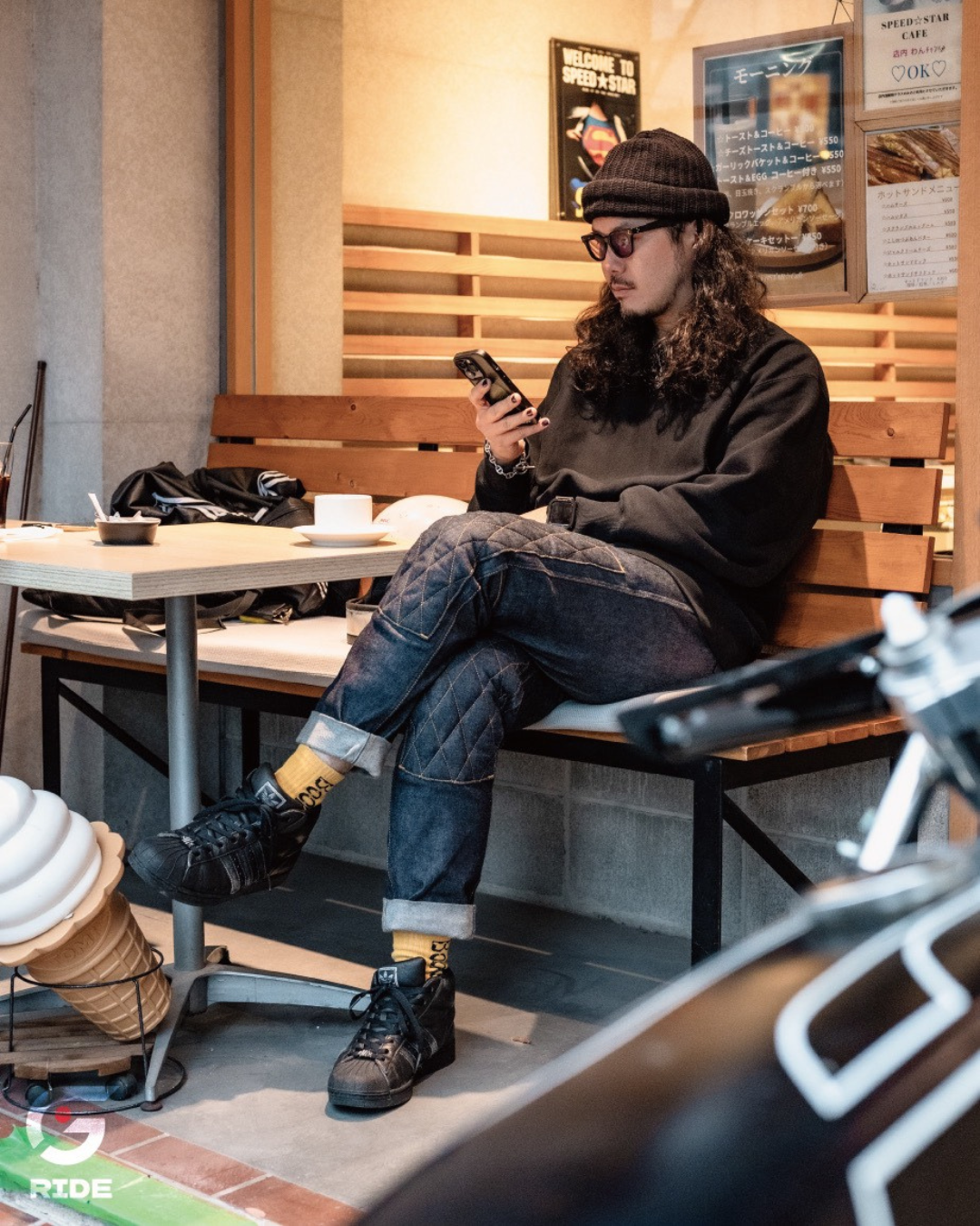 SFGと出会った時の感動はこのデニムを穿きバイクに跨る度に思い出します。バイクをメンテしたりカスタムした時のワクワク感の数倍だと感じる時さえあります。この感動を皆様に提供できる役割に携われて嬉しく思っています。