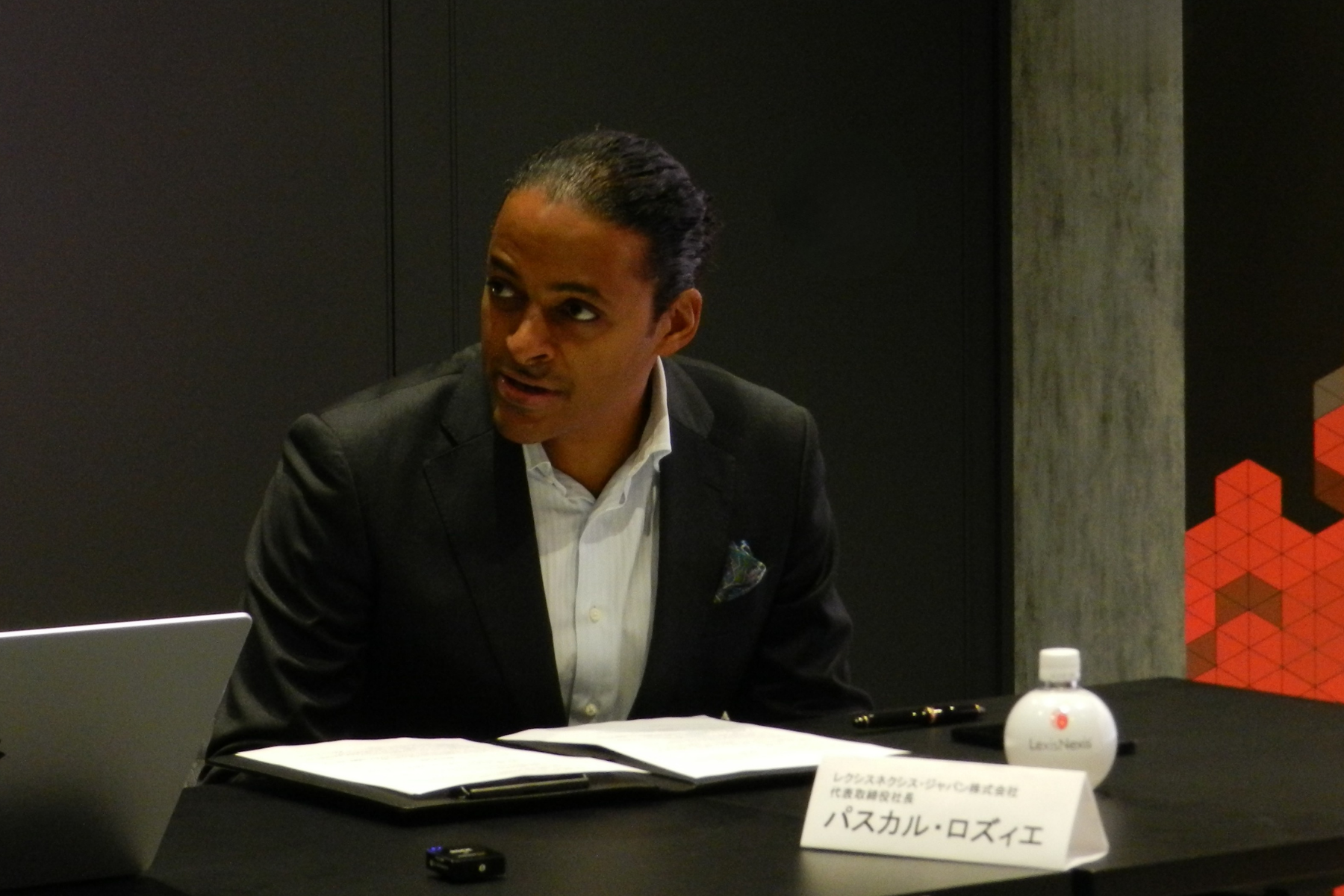 冒頭あいさつで、代表取締役社長のパスカル ロズィエは「レクシスネクシスは法令・判例・規制などの一次情報を基盤に、専門家の確かな意思決定を支える情報プラットフォームを提供しています。私たちの使命は“ルール・オブ・ロー”の推進です」などと述べたうえで、今月ローンチした製品のセキュリティとプライバシー情報を公開する「トラストセンター」を紹介し、「AI時代に必要な透明性と説明責任を備えた基盤づくりを進めています」と述べました。