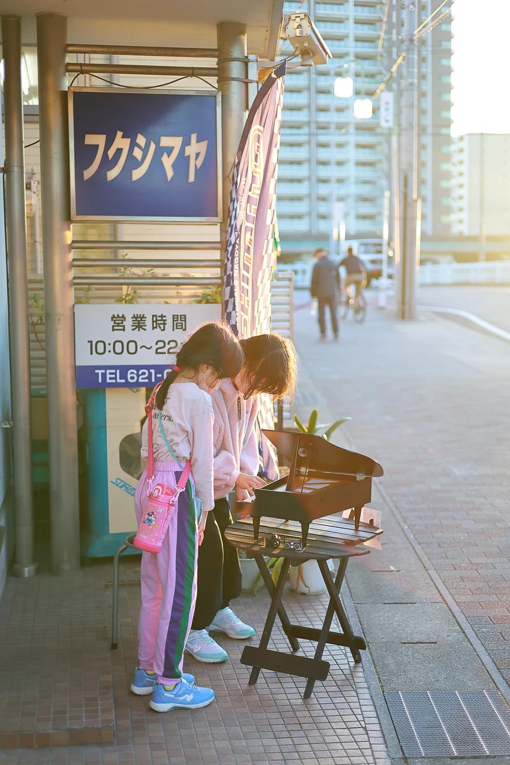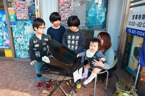 名鉄鳴海駅前で開催された“誰でも弾けるおもちゃのピアノ”。