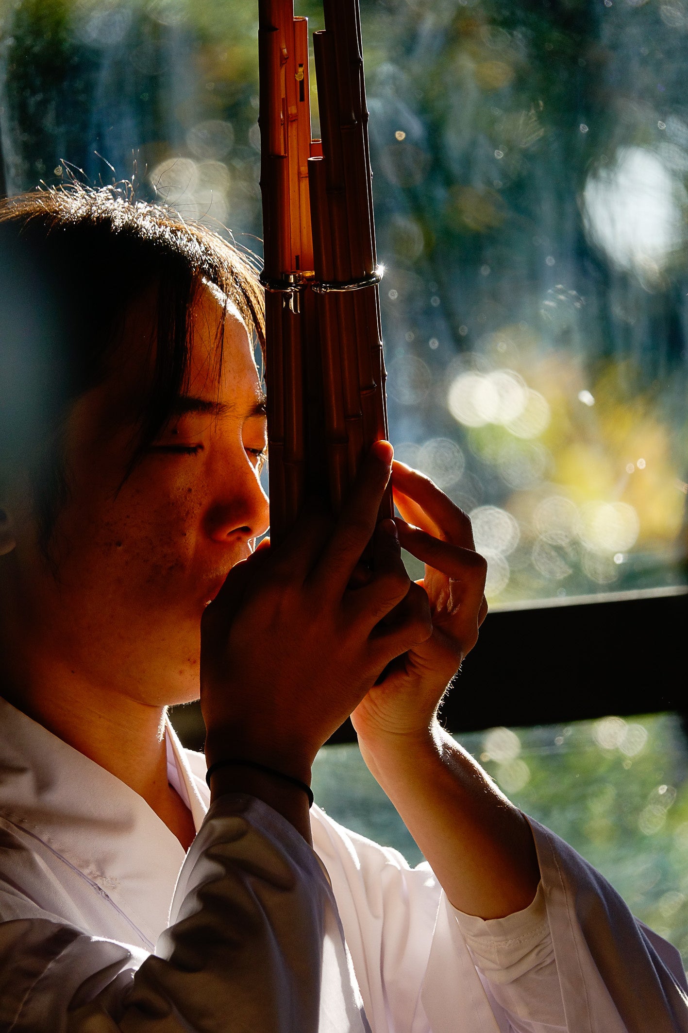 さらに今回は、雅楽器奏者・田中佐京氏と俳優・榊原忠美氏による特別な演奏会として開催。