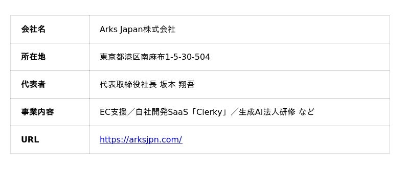 「Arks Japan株式会社」(所在地:東京都港区、代表取締役社長:坂本 翔吾)は、アパレルECに特化したAI接客プラットフォーム 「Clerky for Apparel」 のβ版Waitlistを公開しました。