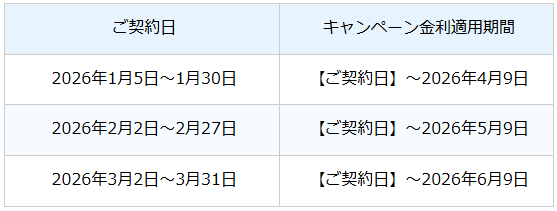 ※キャンペーン金利の適用期間は、お客様のご契約日より異なります。