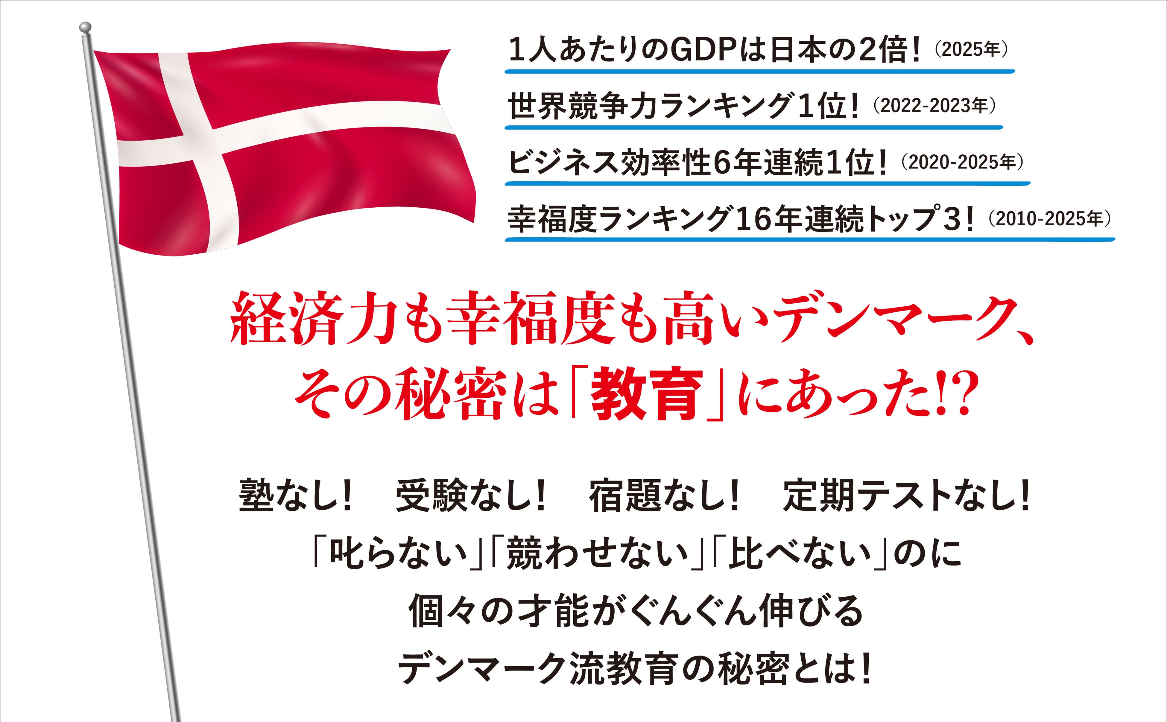 デンマークの学校では、夏休みの宿題も定期テストも入学試験もない。だから塾もありません。そんな「叱らない」「競わせない」「比べない」環境が、どうして子どもの才能を伸ばし、人々の心と社会を豊かにするのか。