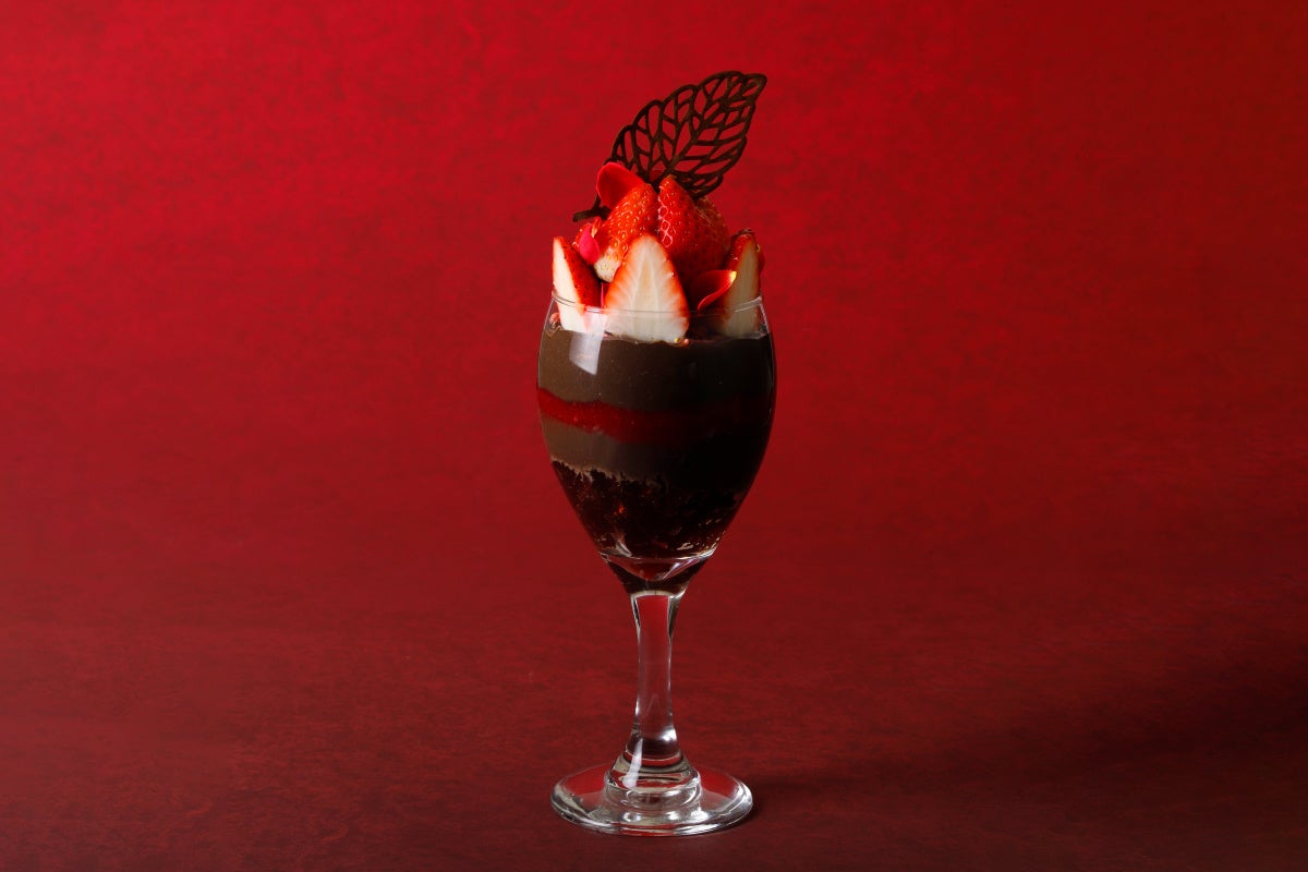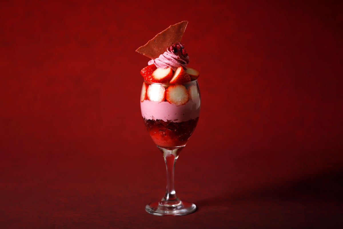 苺を練り込んだチョコレートに、ホワイトチョコレートとラズベリーを合わせたベリーチョコクリームと、フレッシュな国産苺を贅沢に使用。ベリーの甘酸っぱさとまろやかなコクが調和した、苺の美味しさを存分に味わえるパフェに仕上げました。