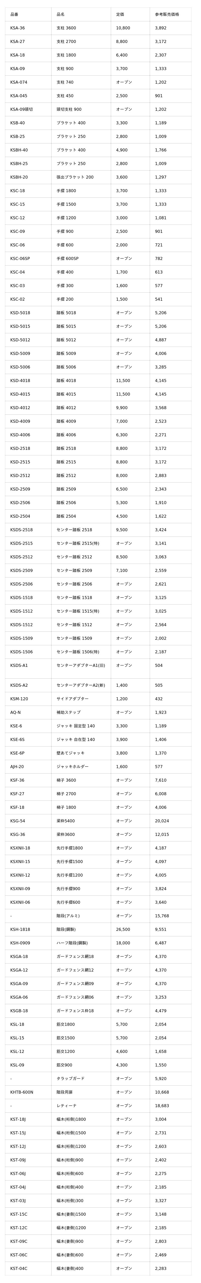 ■ 取扱資材一覧(参考価格※)