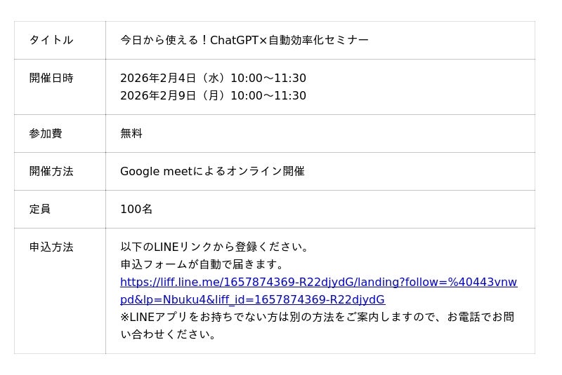 本セミナーでは、いま注目の生成AI「ChatGPT」を日常生活や仕事にどう取り入れるかを、初心者の方にもわかりやすく解説。
