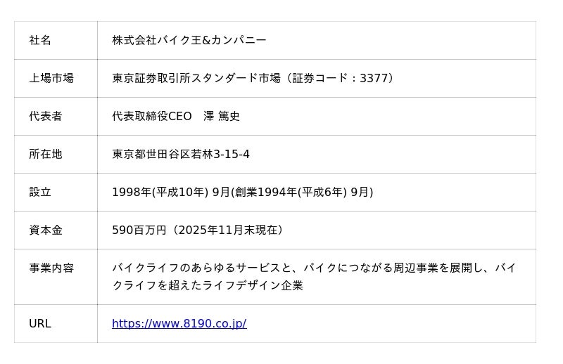 今後、奥氏には当社のSNSやイベントを通じて、バイクライフの魅力やバイクとの多様な付き合い方をアンバサダーの身近な視点で発信していただき、多くの方々にバイクの魅力を感じていただくとともに、充実したバイクライフをサポートするバイク王の各種サービスの紹介にもご協力いただきます。