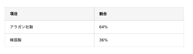 割合で見ると、アラガン社製は韓国製のおよそ1.8倍選ばれていることが分かります。