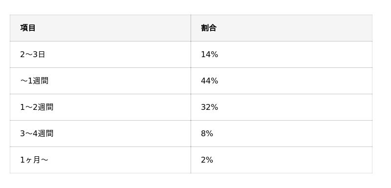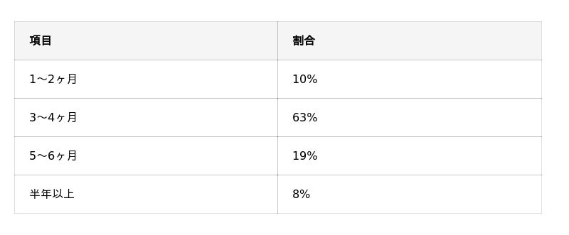 一方で、「半年以上」と回答した人は8%にとどまっています。