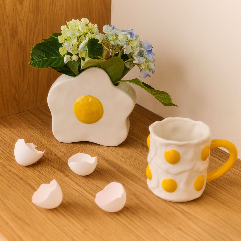 ちょっとしたお花を飾って、それを眺めながらコーヒーで一息。花瓶×マグのたまごコーディネート