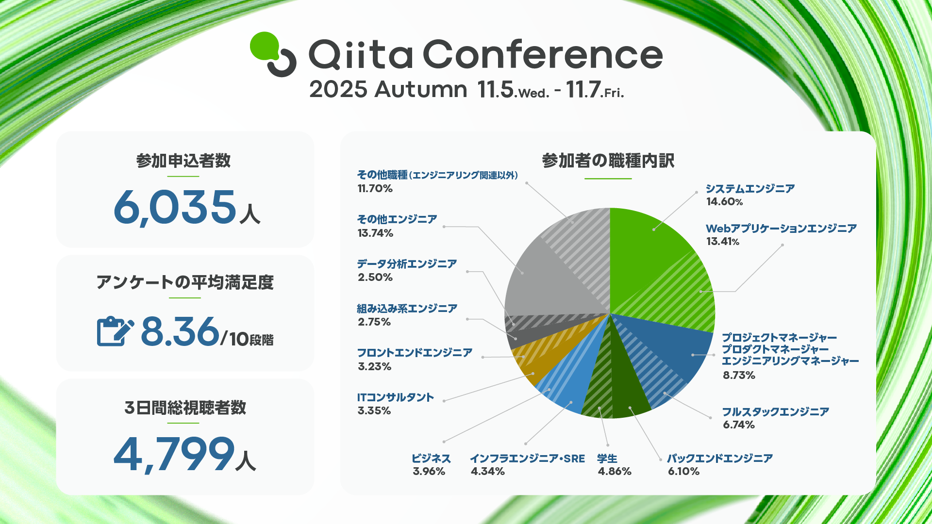 参考(2025年11月開催):エンジニア向けテックカンファレンス「Qiita Conference 2025 Autumn」、Qiita史上過去最多となる6,000名以上が参加申込、大盛況のうちに閉幕