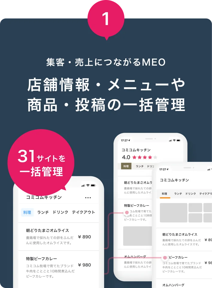 店舗情報・メニューや商品・投稿を一括管理