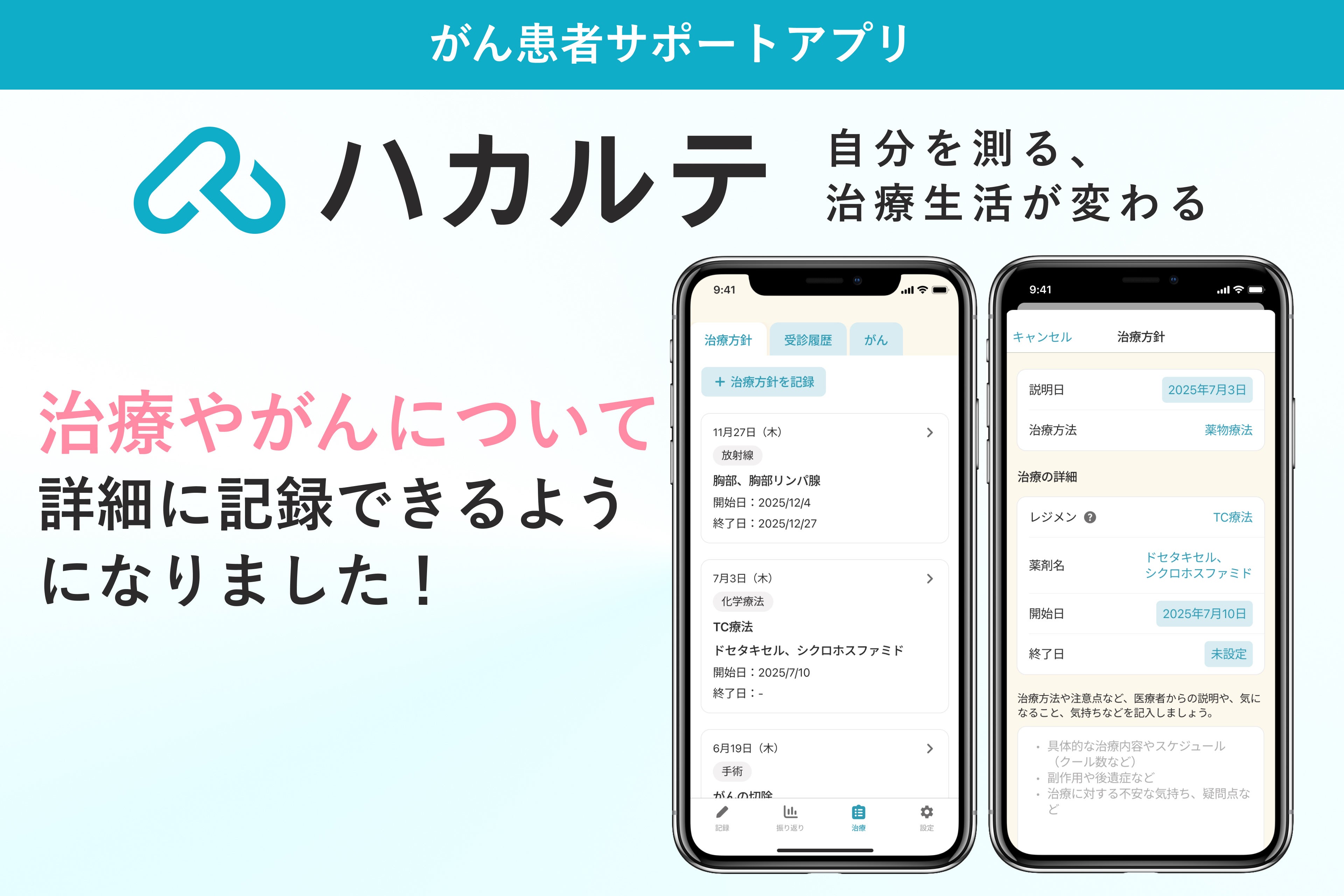 治療方針・受診履歴・がんの診断時期などについて記録可能に