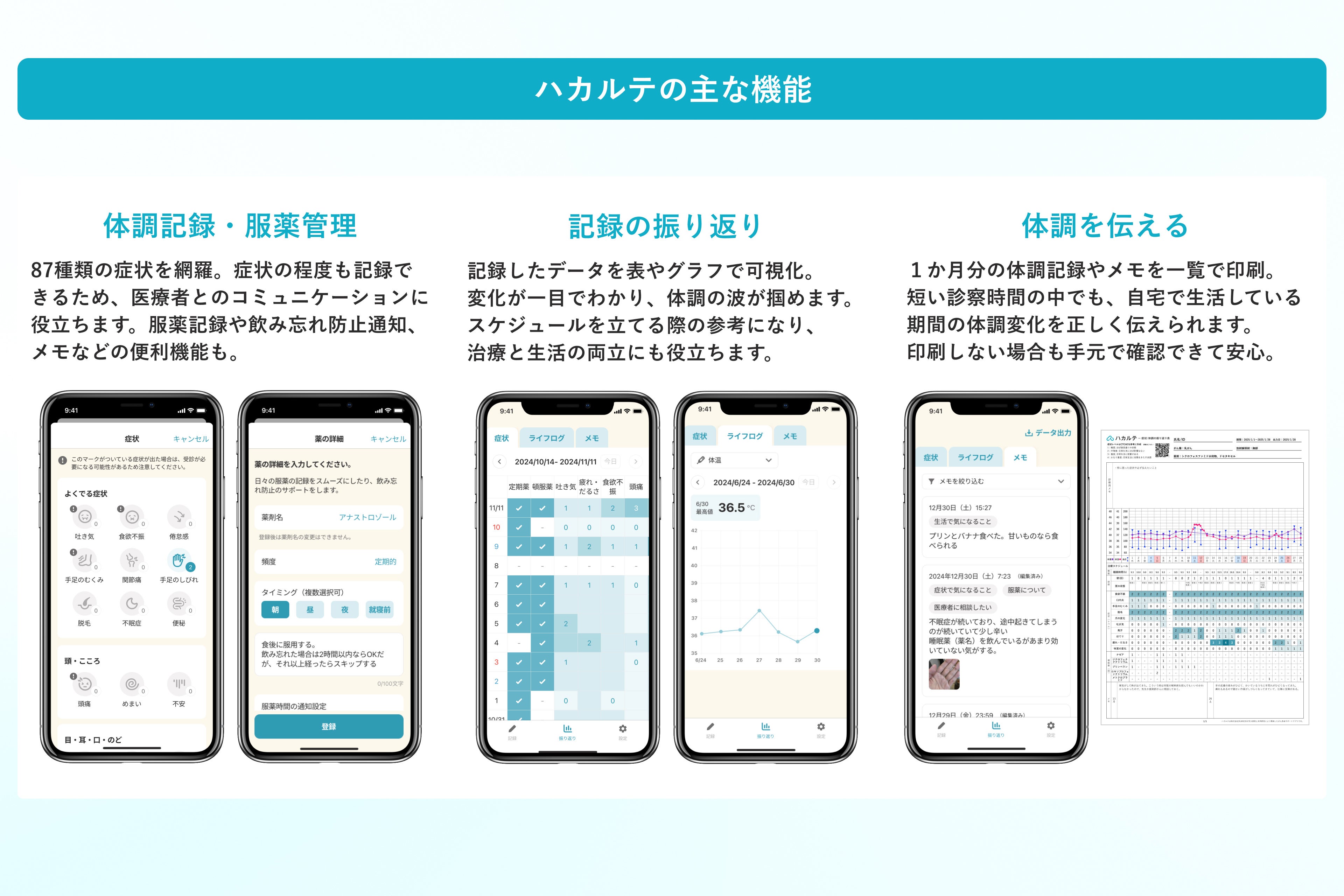 「ハカルテ」は今後もアップデートを重ね、より広くがん患者をサポートできるアプリを目指してまいります。