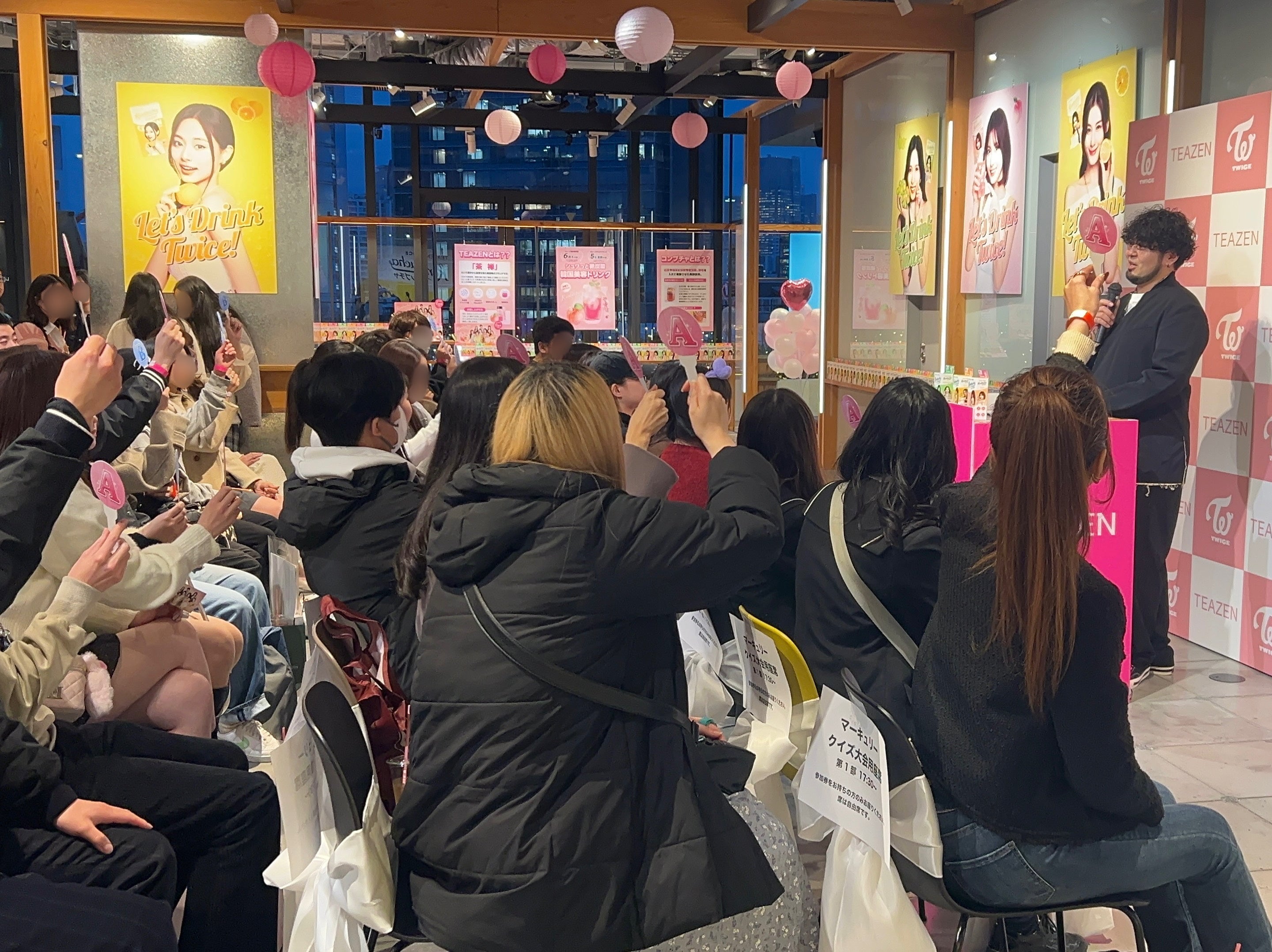 最後に日本での展開について、「本日の発表会を皮切りに日本でのマーケティング活動を本格始動する」とし、3月のフォトカードイベント、4月のTWICEワールドツアーコンサートでのブース協賛などを予定していること、さらに「3/16からHMV SHIBUYAでPOPUPも開催予定」と明かした上で、「今年一年、TWICEとともに『TEAZENコンブチャ』を日本の皆さまにより身近に感じていただけるよう努めていく」と締めくくりました。