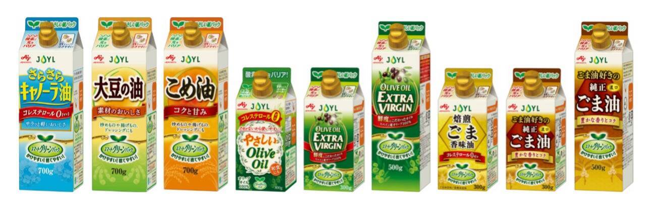 紙パックの食用油「スマートグリーンパック®」シリーズラインナップ(すべてオープン価格)