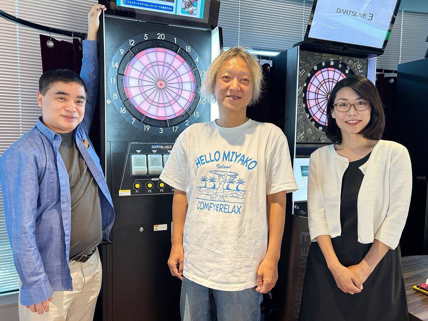 「ダーツライブ」開発メンバーの3人。写真左から山本さん、野田さん、越沼さん