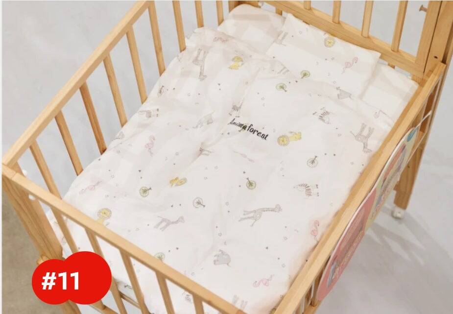 「掛けふとんはポリエステルと羽毛の2種類を揃えています。ポリエステルはホコリが立ちにくく長持ちしやすいメリットがあり、羽毛は軽さ、やわらかさ、高い吸放湿性とそれぞれ特徴が異なります」。ポリエステルの掛けふとんと固綿の敷きふとんのセットがリーズナブルになるが、「私個人の推奨は、羽毛ふとんと立体ファイバーの敷きふとんのセット。羽毛による軽さとムレにくさは、汗をよくかく赤ちゃんの快適性を高め、立体ファイバーの敷きふとんは体重がかかる場所が集中しにくい体圧分散で寝心地を守ります」。