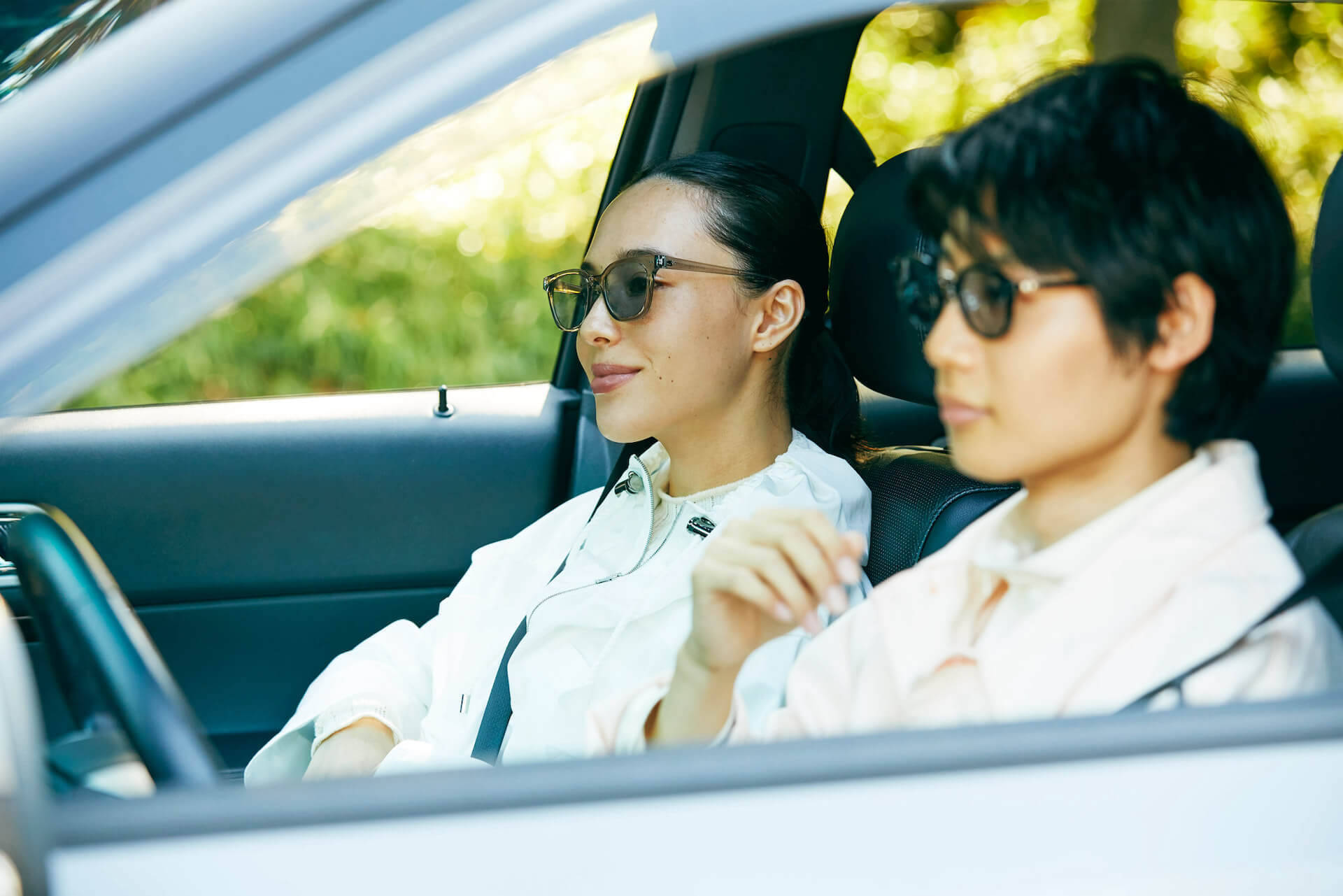 また朝日や西日等の時間帯はもちろん、道路状況によっては日差しが絶え間なく変化する際の「運転時」も、サングラスの着用をおすすめしたい日常のシーンのひとつ。レンズでは、可視光線透過率50%以上の目が透ける程度のレンズを選べば、光を遮りつつ運転に対して視界も確保されるのでおすすめだ。