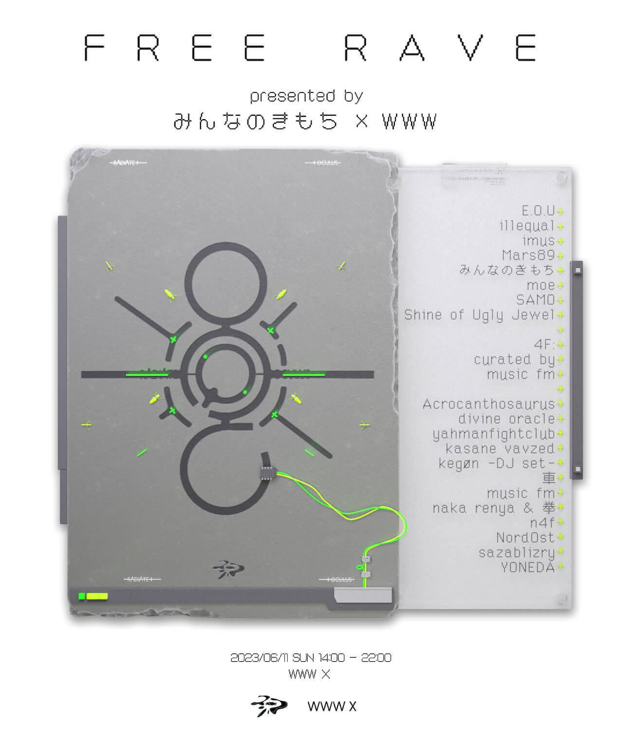 新世代レイヴの筆頭〈みんなのきもち〉により、4年ぶりの<FREE RAVE>がWWW Xにて初のデイ開催で復活。6月11日(日)に開かれる本イベントの全ラインナップが発表された。