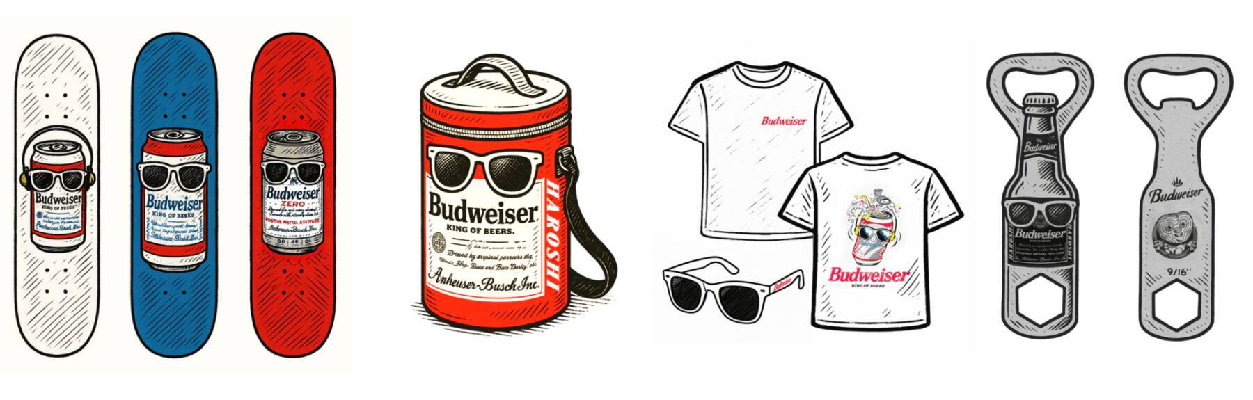 ”に込めた、味わいだけにとどまらない、自由で楽しい瞬間・体験を作るビールブランドであることを表現したいと言う想いと、“PMA=Positive Mental Attitude(どんなときも前向きに)”というスローガンを掲げ、国内外のアートシーンに多大な影響を与え続けるHAROSHIの姿勢が共鳴し、カルチャーシーンへの共通するリスペクトを軸に実現。7月18日(金)より全国で展開されるコラボパッケージを皮切りに、限定アイテムが当たるキャンペーンなど、この夏の一瞬一瞬を「バドワイザー」とともに楽しめる、さまざまなコンテンツを用意する。