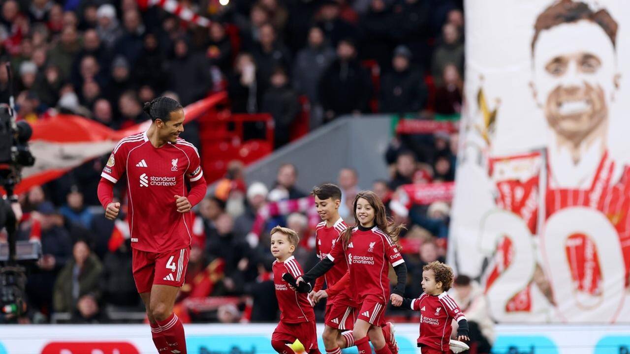 ジョタの子供たちが、リヴァプールのキャプテンであるフィルヒル・ファンダイクとともにピッチへ入場すると、サポーターから温かい拍手が送られた。