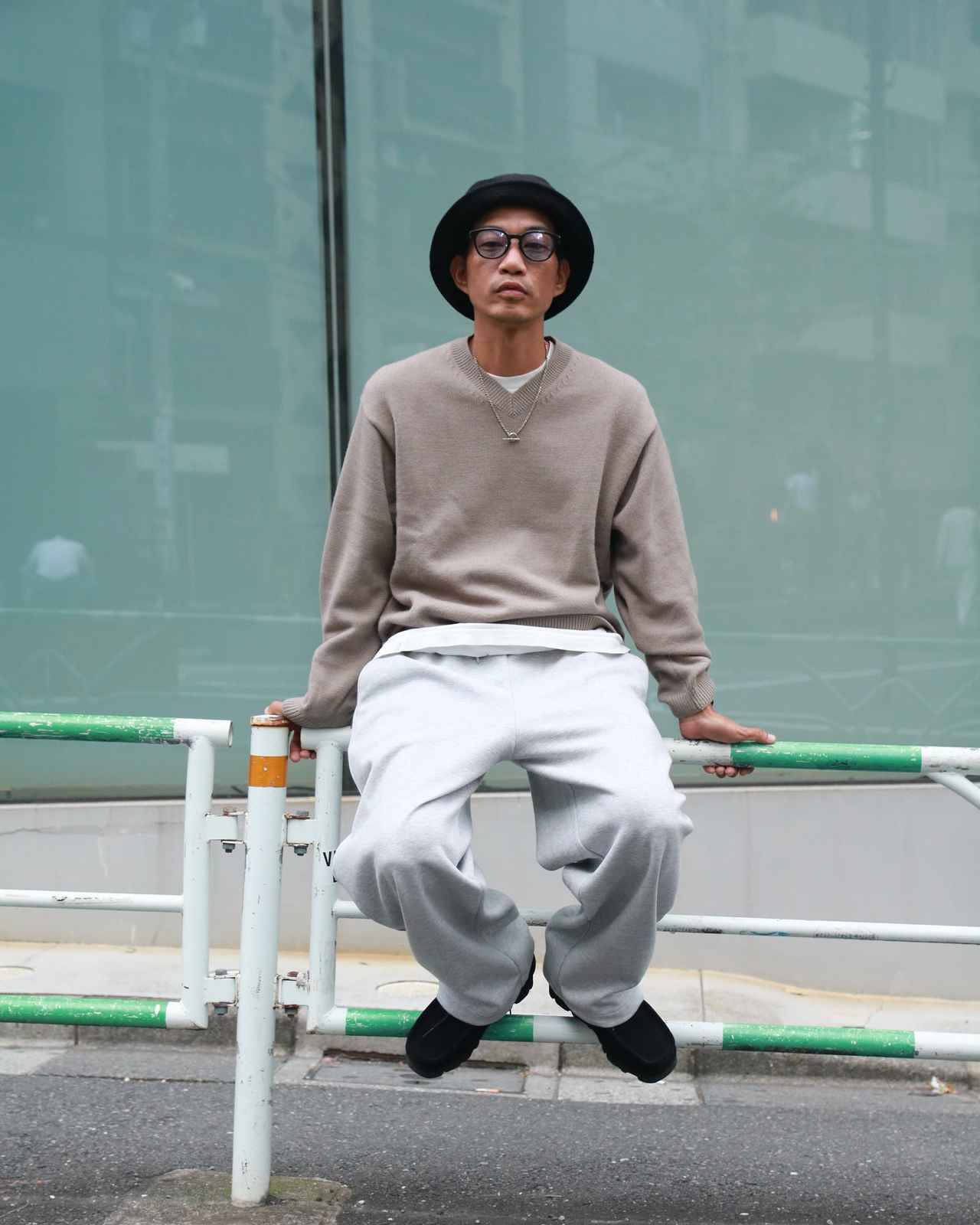 トレンドのワイドスウェットパンツに、シンプルなニットを合わせる上級者らしい着こなし。異なるテイストのアイテムを組み合わせることで、センスの良さを感じさせます。インナーには、ホワイトTシャツをチョイス。ニットのブラウンとワイドスウェットパンツのライトグレーとの相性が良く、重ね着スタイルにすることで抜け感を演出しています。シューズとバケットハットをブラックにまとめて、統一感もプラス。さまざまなシーンで大人の休日を楽しめる着こなしです。