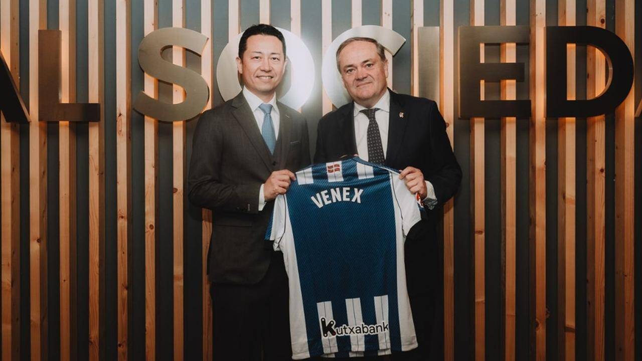 現地時間1月25日(日)、ソシエダの本拠地であるアノエタスタジアムにて調印式が執り行われ、ベネクスは取締役COOの菱沼信之氏が登壇した。