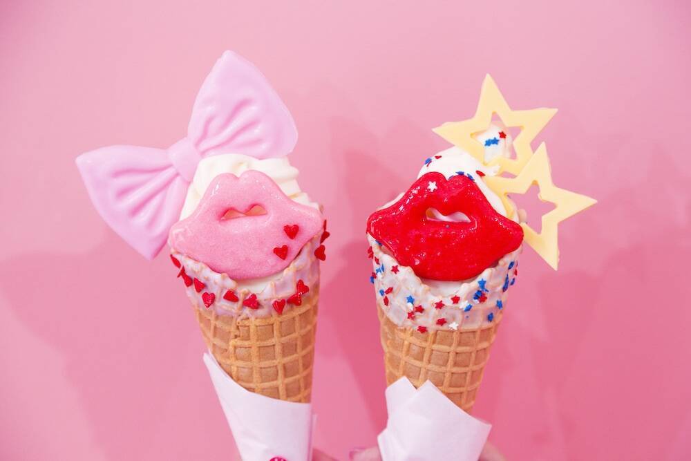 お店にある8種のメニュー以外にも、コーン、アイス、トッピングを自由に選んでオリジナルのデザインを作ることもできちゃう!