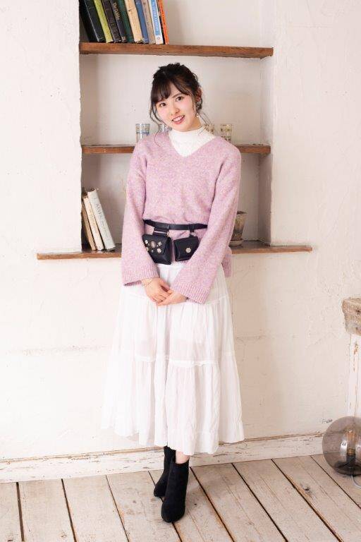白とピンクで全体的にふわふわな感じにして、ウエストバッグで締めてみました!