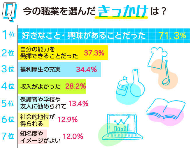 「好きなこと」「興味があること」で職を選んでいる人が70%以上と圧倒的なTOP!