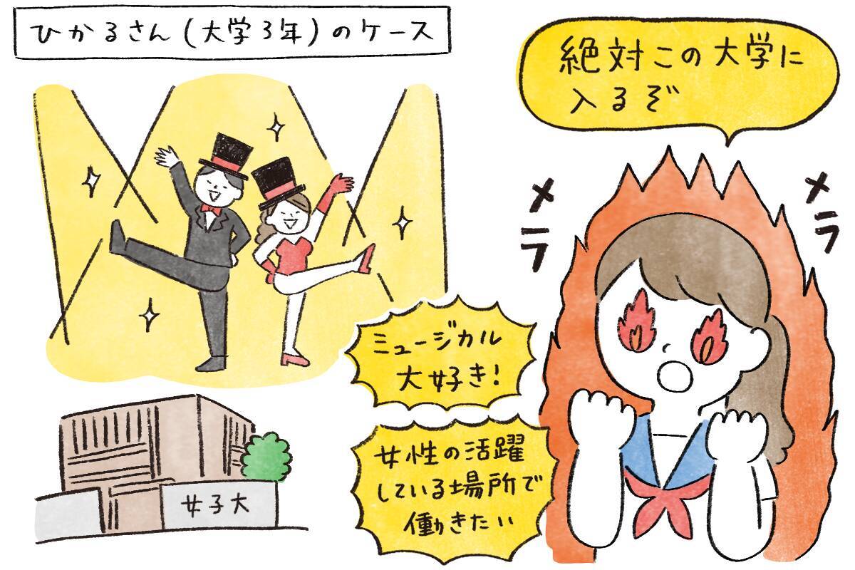 総合型選抜を受験した学部・学科文芸学部・劇芸術学科総合型選抜を受験しようと思ったきっかけは?私はもともと舞台やミュージカルを観るのが好きで、そのことについて深く勉強できる学科を探していたときに、志望校の大学をみつけました。それと、私が今まで通ってきた学校はずっと男女共学だったのですが、将来は女性が活躍する場所で働きたいという気持ちが強かったので、女性がたくさんいて、いろんな考え方が学べる女子大に行きたいという希望もあって。