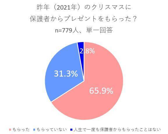 結果、去年(2021年)は約7割が「保護者からクリスマスプレゼントをもらった」と回答。