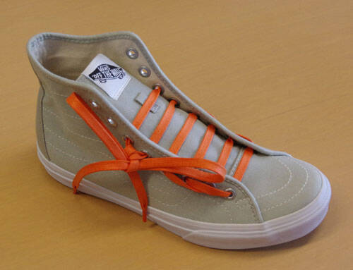 靴ひもは、幅が広めで平らな“平ひも”を選ぶと、“ボーダー”がより強調されるのでオススメ。