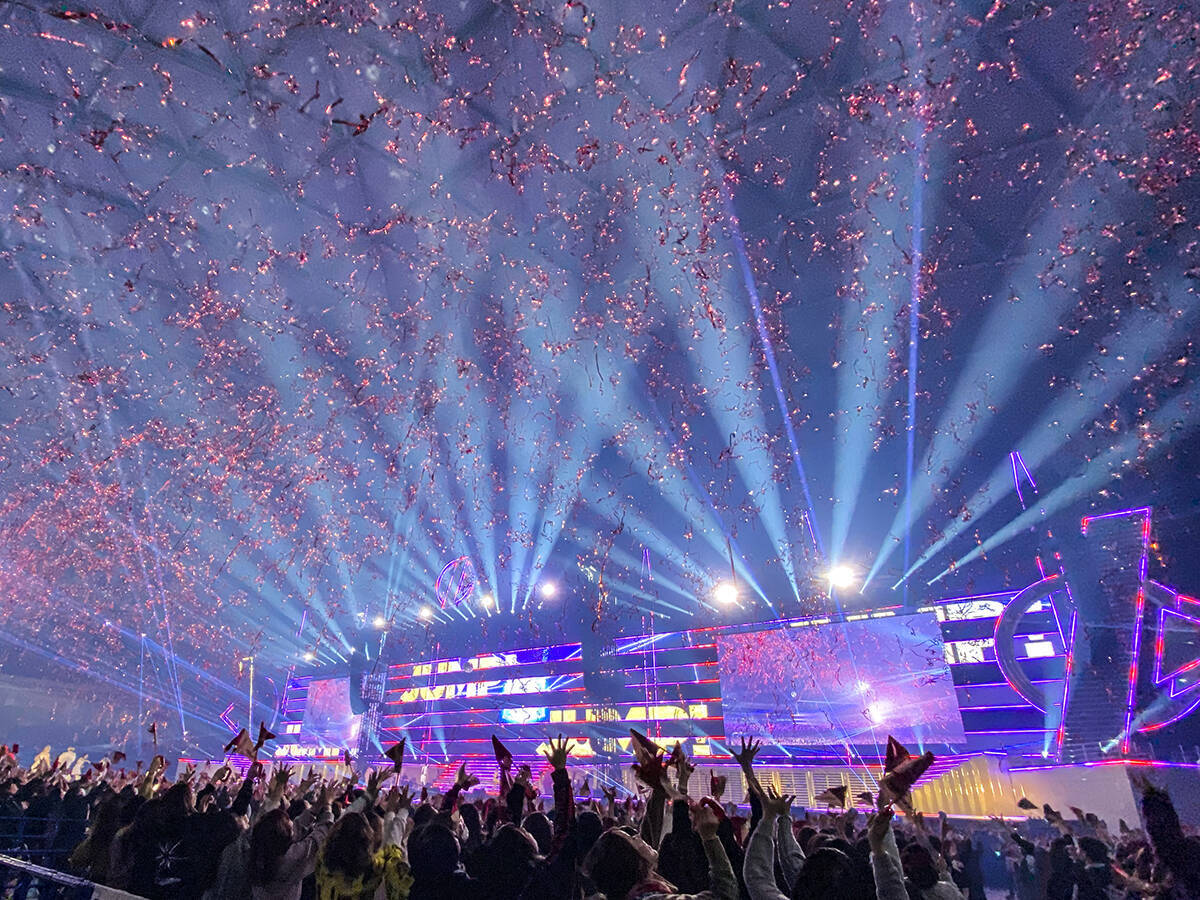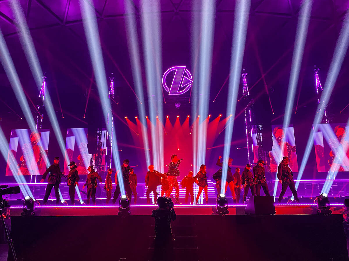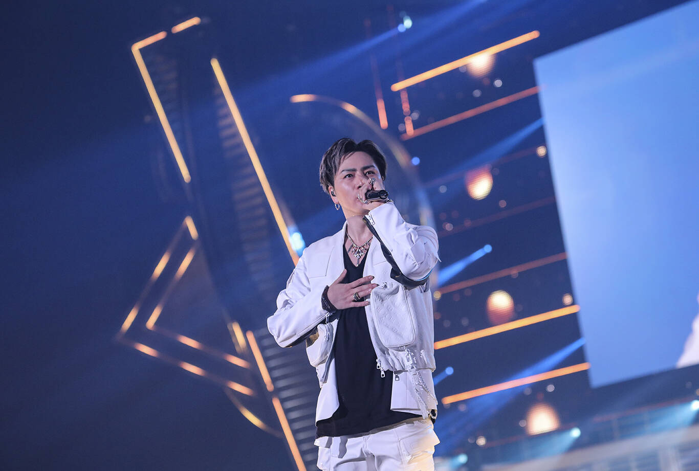 「LDH PERFECT YEAR 2020」を祝う荘厳なイントロダクションの後、HIROOMI TOSAKAの名前がアナウンスされ、暗転した場内はザイロバンドが発光するピンクのカラーに包まれる。バンドが鳴らす低音がしっかりとボトムを支え、ハイブリッドなEDM「Who Are You?」で幕を開けると、続くアップリフティングな「Nobody Knows」のドロップ部分では「Put your hands up!」「JUMP!」とオーディエンスを煽る。SFスリラー映画のようなコンセプト映像を挟み、3曲目も『Who Are You?』からの「NAKED LOVE」。アンビエントなリバーブの中で有機的に絡み合う分厚いビートと登坂のヴォーカル。巨大なステージをダンサー達と左右に移動し、終盤で見せた自身のダンスでもエンターテイナーっぷりを見せつけた。